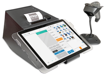 ETRON onRetail Komplettkassensystem: Tabletkasse mit Belegdrucker und Barcodescanner